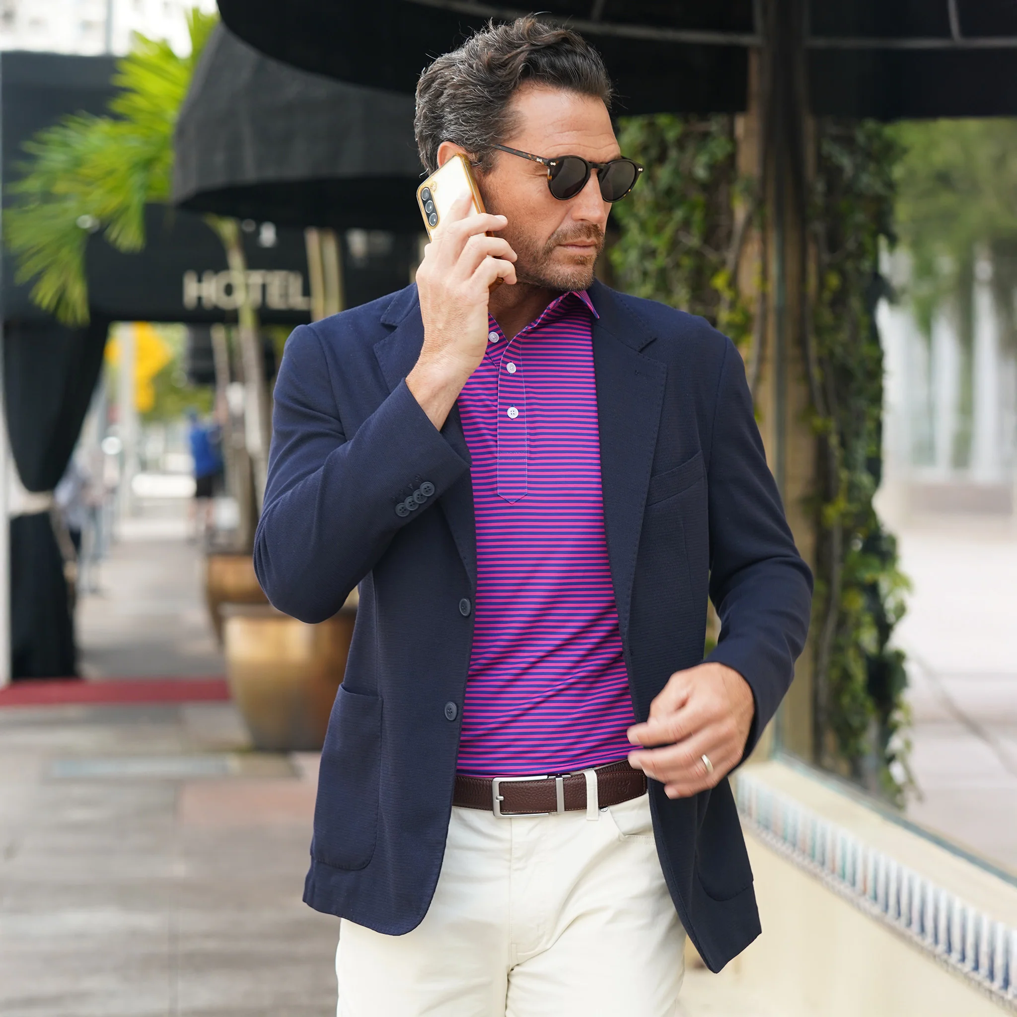 Featherweight Flex Polo Collins Berry with Navy Stripe