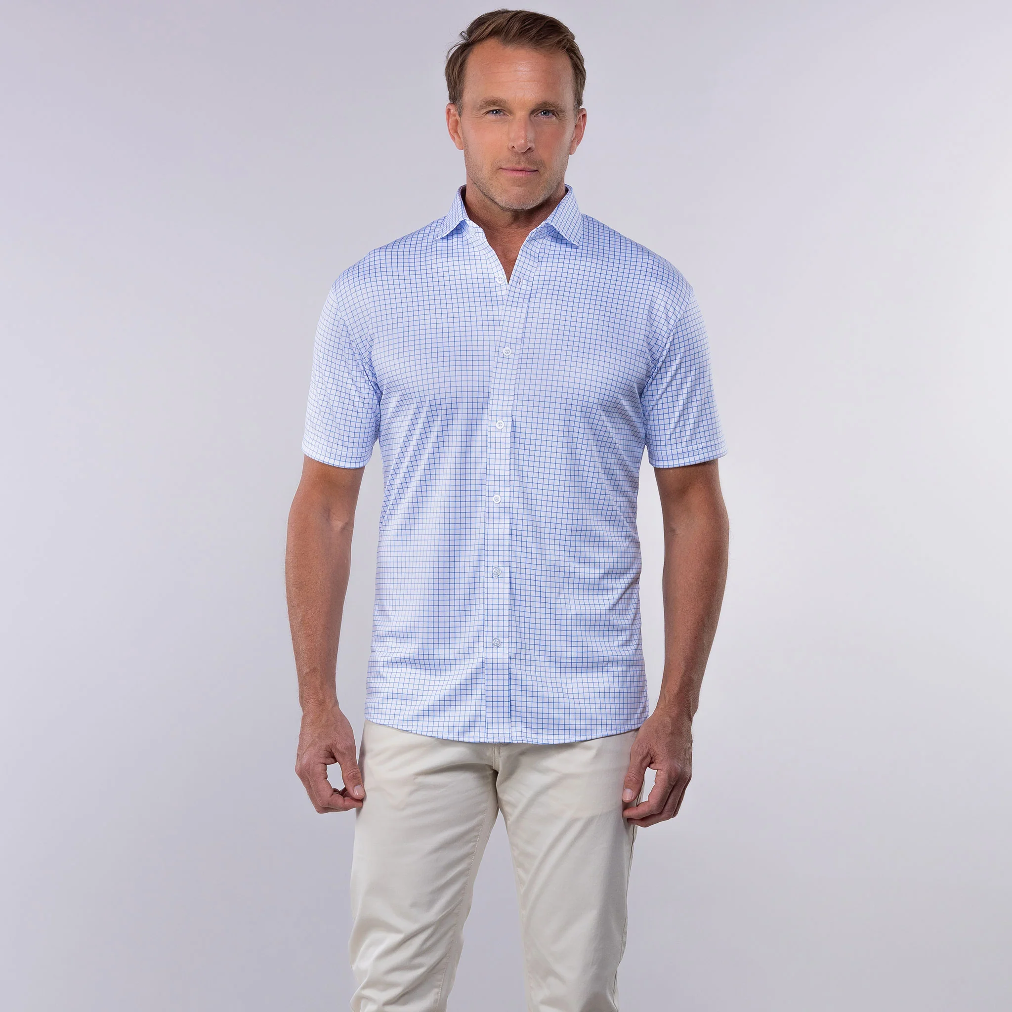 Guaranteed to be your new favorite shirt to wear by itself, over a t-shirt, or under a sweater. Show off the firm dress collar and comfortable short sleeves for an elevated casual touch of style. This dress shirt moves with you, whether in the office or on the go.